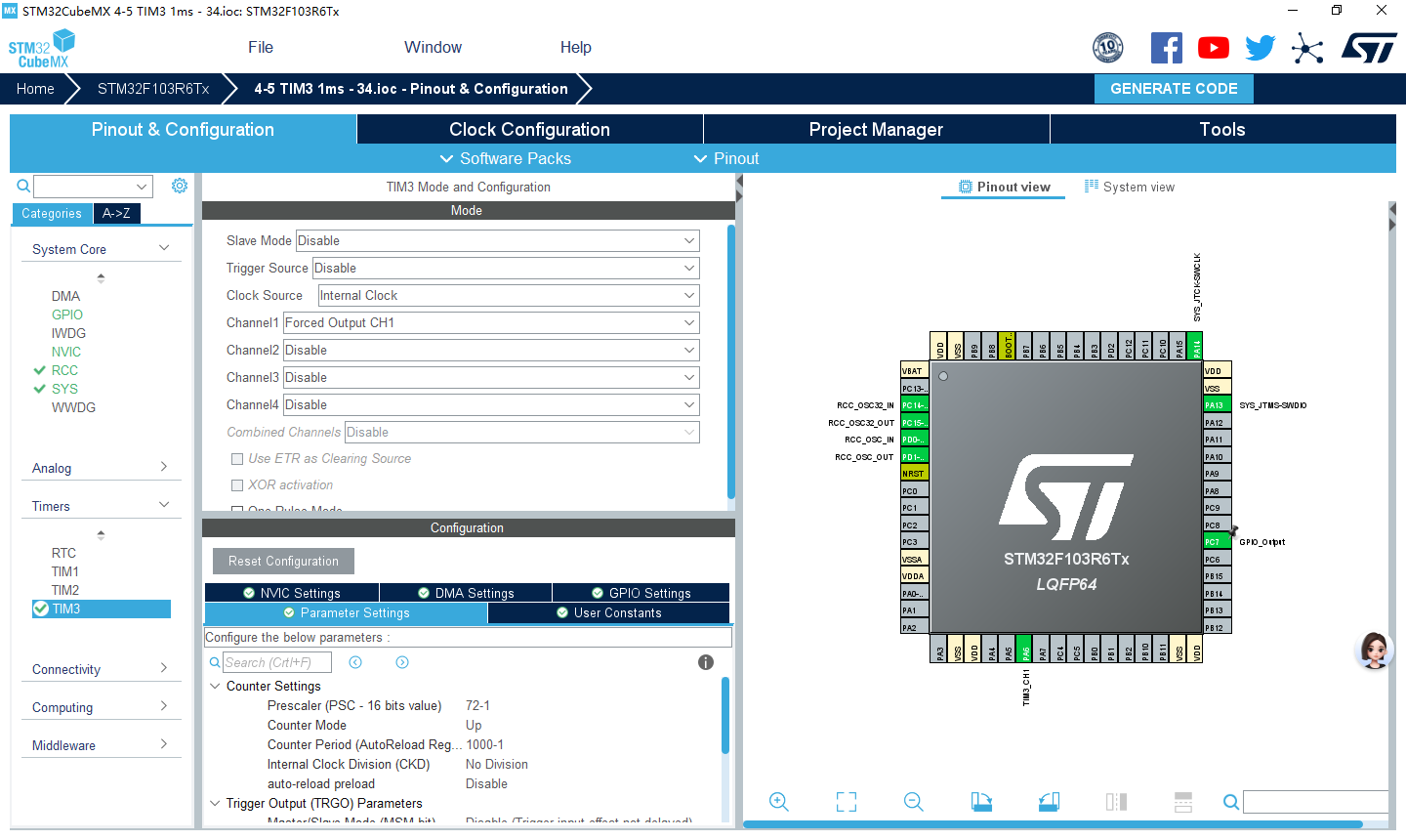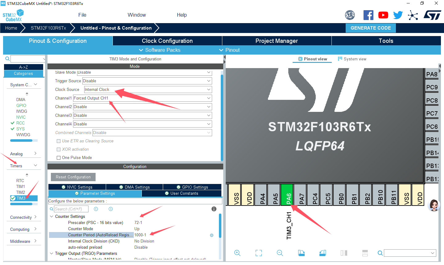 TIM1定时时钟72 MHz时,