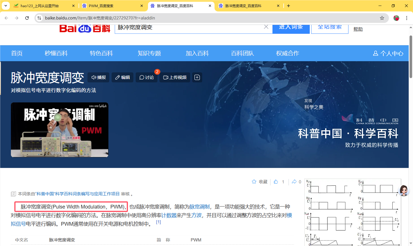 脉冲宽度调变(Pulse Width Modulation,PWM),也成脉冲宽度调制,简称为脉宽调制,是一项功能强大的技术,它是一种对模拟信号电平进行数字化编码的方法。在脉宽调制中使用高分辨率计数器来产生方波,并且可以通过调整方波的占空比来对模拟信号电平进行编码。PWM通常使用在开关电源和电机控制中。