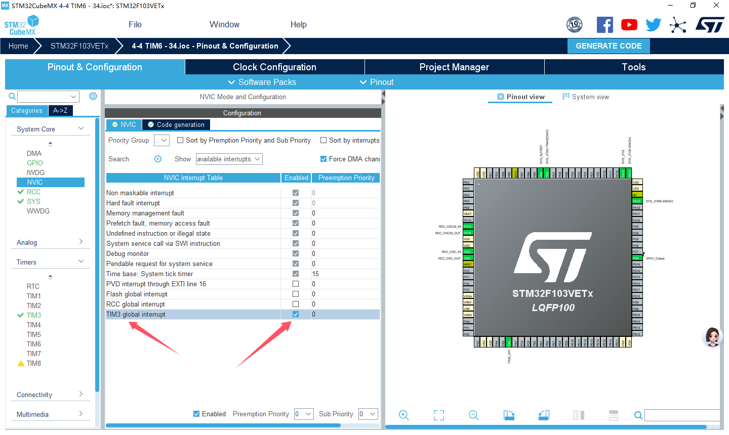小容量的 STM32F103xx系列产品,如 STM32F103R6 包含1个高级控制定时器TIM1、2个通用定时器TIM2、TIM3,以及2个看门狗定时器和1个系统嘀答定时器。