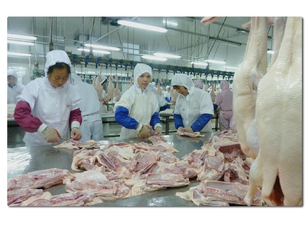 鹅:分割为头、颈、爪、胸、腿。躯干:1号胸肉、2号胸肉、3号腿肉、4号腿肉。我国鸡分为腿 部、胸部、翅爪及脏器。鸭躯干:1号鸭肉、2号鸭肉。