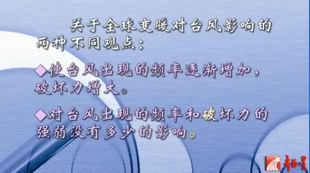 访谈中,伍荣生院士讲解了全球变暖对台风影响的两种不同观念。