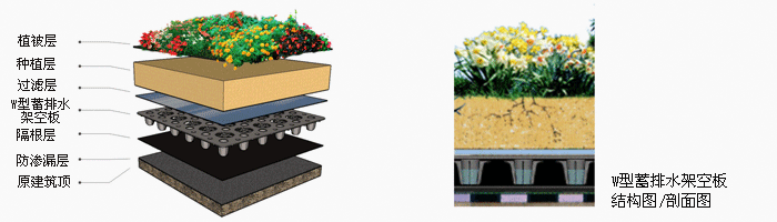 种植屋面是以绿化植物为主要覆盖物,配以植物生存所需要的种植土层,以及种植屋面所需要的耐根穿刺层、蓄排水层、防水层、保 温层等所共同组成的整个屋面系统。城市建筑实行屋面绿化,可以大幅度降低建筑能耗、减少温室气体的排放,同时可增加城市绿地面积、美化城市、改善城市气候环境。