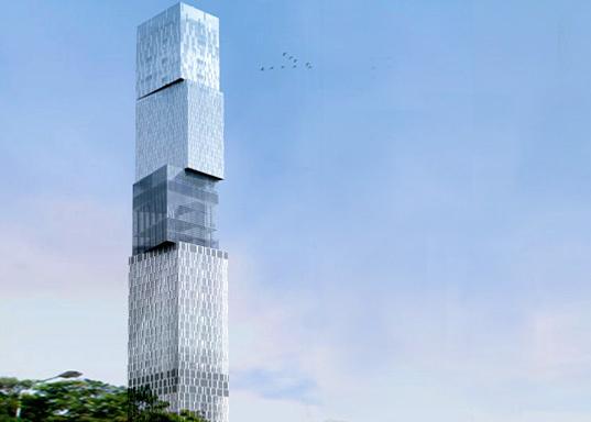“印度塔”位于孟买南部的沿海的一个称为“女王项链”的地区,旋转的外形是对它的3-英亩场地和建筑的功能要求的反应。