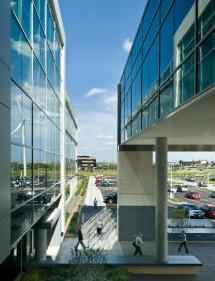 明尼苏达州的大河能源总部,是一个由混凝土框架和玻璃幕墙构成的四层办公楼。这栋办公楼代表了美国电力能效的最高水平,展示了办公室的节能潜力和最新的能效技术。大河能源总部希望自己这些先进的能效技术也能为其客户所采用,从而减少对以化石燃料为基础的发电需求。