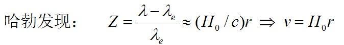 其中v为退行速度,d为星系距离,H0为比例常数,称为哈勃常数。这就是著名的哈勃定律。
