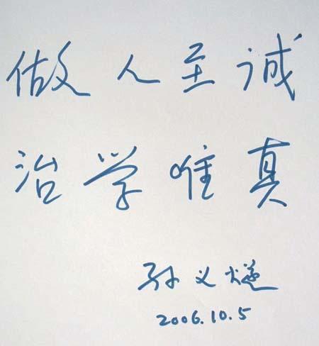 我的为人准则是:做人至诚,治学唯真。