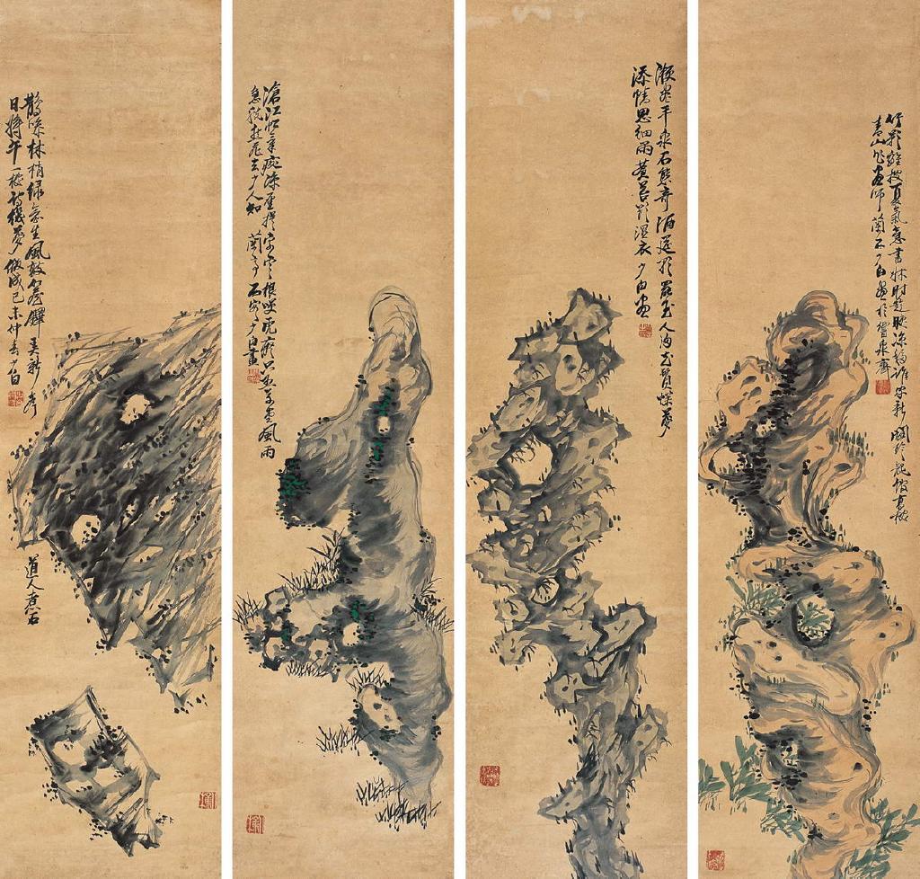 形。“波涛冲激而成嵌空”,“或矗如峰峦,列如屏障”。嵌空、峰峦、屏障,说的都是“石形”。石体要有孔穴空洞,峰峦起伏叠嶂;无峰,无孑L,无洞,或虽有而不理想就不好了。