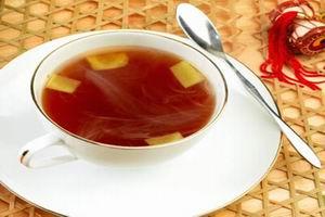【原料】生姜5克,乌龙茶叶5克,红糖1匙。