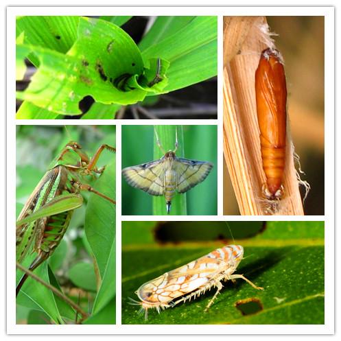 1.根据作物的被害状来确定害虫的种类,指导测报。为害农作物的害虫主要有咀嚼式和刺吸式两大类,由于口器的构造和取食的特点不同,作物的被害状也不一样,咀嚼式口器的昆虫取食固体物质,咬食植物的各部分组织,造成机械损伤,如蝗虫,粘虫等把叶子咬得残缺不全,稻纵卷叶螟、稻苞虫等,把叶子卷缩成卷,躲在里面为害;玉米螟、二化螟先在茎杆上咬个洞,然后钻进茎杆里去为害。植物被刺吸式口器的昆虫为害后,不影响外形的完整。只造成生理伤害,植物叶部被害,常出现各种斑点或引起变色,皱缩、卷曲等,如蚜虫、叶蝉、飞虱等。所以,熟悉昆虫口器类型与被害状特征后,即是害虫已离开寄主,根据被害状也能大致判断害虫的种类。
