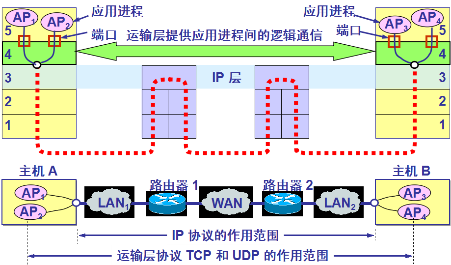 传输层保证进程间通信,高层协议不用考虑数据传输中是否会出现差错等问题了;