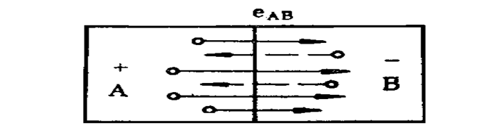 两种金属A、B的自由电子密度分别为nA和nB ,且nA>nB。当两种金属相接时,将产生自由电子的扩散现象。