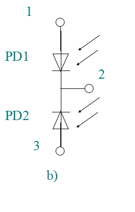 如图4-21 所示,在非晶态的硅的基片上,平排做了三个光电二极管。