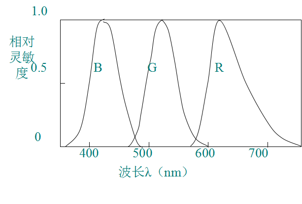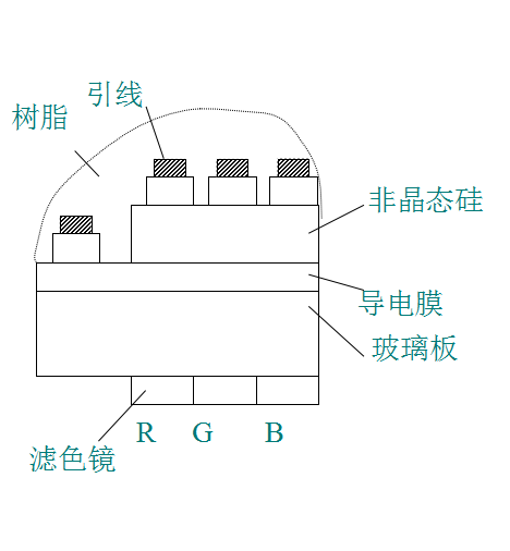 在各个光电二极管上分别加上红(R)、绿(G)、蓝(B)滤色镜,将来自物体的反射光分解为三种颜色。