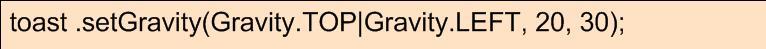 通过Toast.setGravity()方法可以修改显示位置,支持三个参数