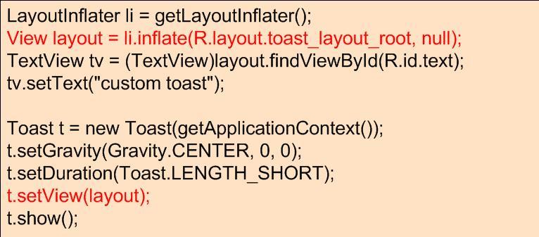 2、采用动态加载的办法在程序中为Toast使用定制布局