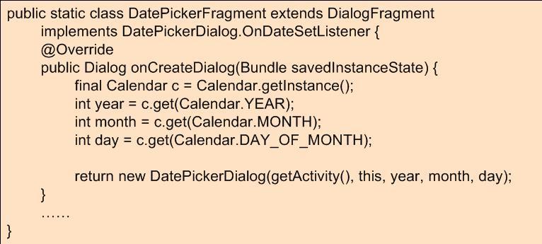 在构建日期时间对话框时,我们需要使用DialogFragment