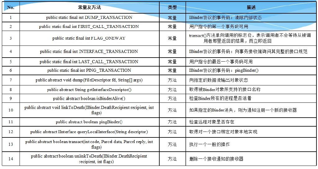 IBinder接口的常量和方法