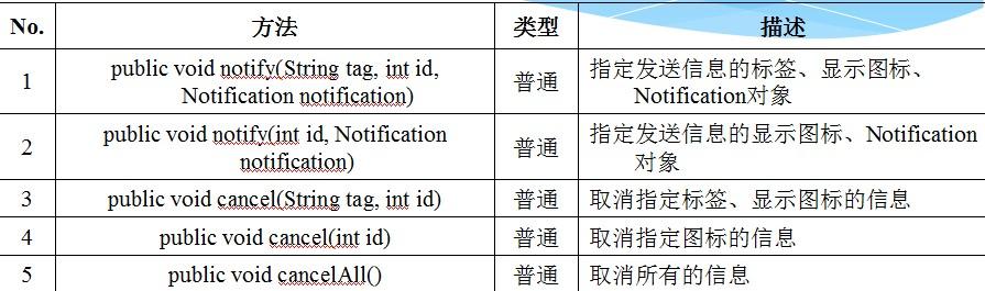 NotificationManager notificationManager = (NotificationManager) super.getSystemService(Activity.NOTIFICATION_SERVICE); // 取得系统服务