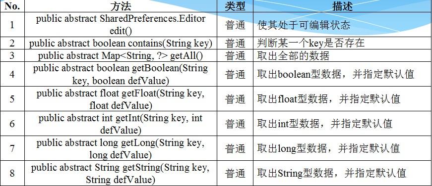 SharedPreferences接口的常用方法