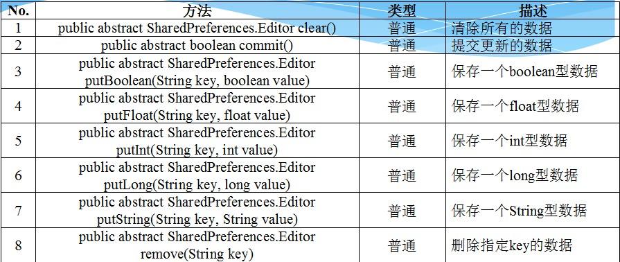 SharedPreferences.Editor接口的常用方法