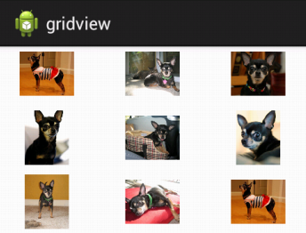 GridView控件用于显示一个表格、GridView采用MVC模式将前端显示和后端数据进行了分离、GridView装载数据时并不使用GridView本身的方法、通过指定一个Adapter对象给GridView提供数据、GridView显示效果如下