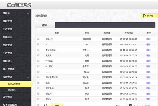系统消息管理:向平台所有用户发送系统消息。