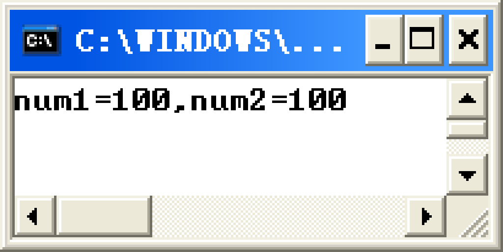 num2.Value=100; //修改num2的成员值为100,由于num2和num1共同引用一个对象, //其实就是修改num1的成员