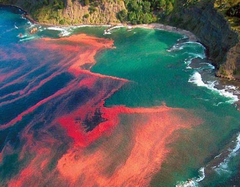 1)淡水:水华、湖靛:浮游植物在淡水小水体和浅水湖泊中场大量发生,使水体呈现色彩,这一现象称为~。