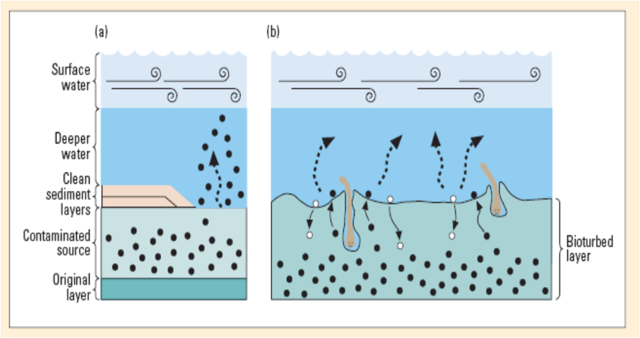 7. 底栖动物栖息于沉积物中,它们的各种活动,如摄食、避敌、排泄等行为,被称之为生物扰动。生物扰动对沉积物中污染物的环境行为的影响,例如,生物扰动对重金属的影响,(1)改变重金属在沉积物中的分布(2)促进重金属从沉积物向水体释放例如,生物扰动增加沉积物的溶解氧,增强生物扰动的强度,促进沉积物中甲基汞向水体迁移。(3)改变沉积物中重金属的形态。减少了甲基汞形成。