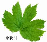 2)复叶:复叶指的是每个叶柄上有2个以上叶片的叶。复叶的叶柄称为总叶柄。总叶柄上着生许多小叶,每小叶的叶柄称为小叶柄。根据复叶上小叶排列方式的不同,可分为羽状复叶、掌状复叶、三出复叶。