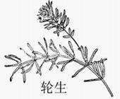 2、穗状狐尾藻:叶轮生,叶分裂,羽状分裂,1回羽状分裂;