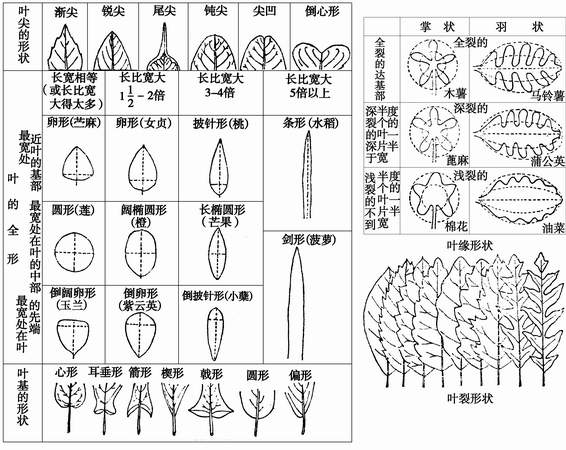 1)叶形:卵、椭圆形、披针形、剑条;