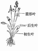 6、水车前:叶不轮生,没有明显地上茎,有叶柄;