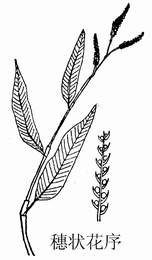 7、水蓼:茎节明显,叶片披针形,叶互生;