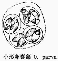 b 卵囊藻属:单细胞或群体。营浮游生活。群体常由2、4、8或16个细胞组成。包被在胶化膨大的母细胞壁中。