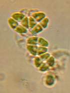 网球藻属:像一串串葡萄,群体外常有透明无色的胶被。淡水中仅2种。