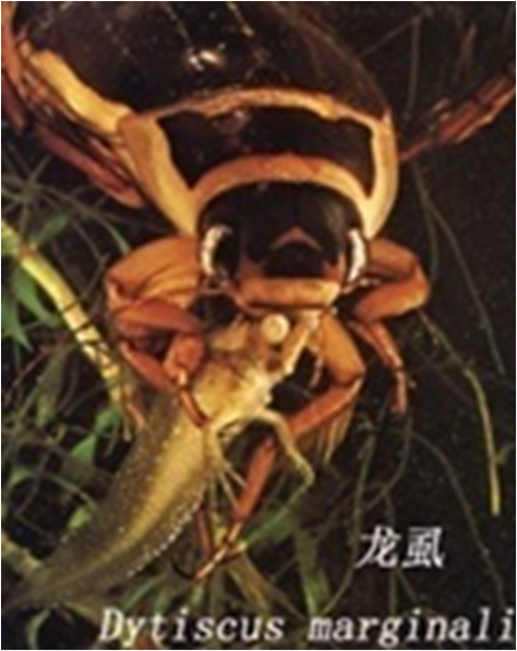 成虫常飞至陆地。如龙虱Cybister,它在胸部有两对,腹部背面两旁有8对通往气管的呼吸孔,气孔通向翅鞘下面的气腔。龙虱为肉食性,其幼虫俗称水蜈蚣,性凶猛,在一昼夜内可食50个蝌蚪,可食取16尾鱼苗,是养鱼业大害。