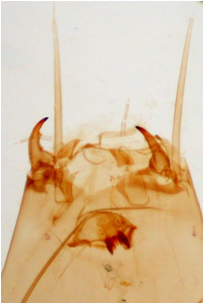 13(14)体节背面有若干狭窄的条状横带,体末形成一短的几丁质管。………………………………………………………………………………………毛蠓科Psychodidae