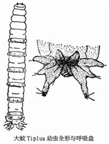 3(4)腹末有由6条辐射的叶状突起,构成呼吸盘。…………………………大蚊科Tipulidae