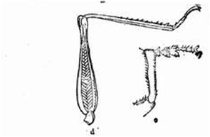 为善游泳的种类所特有。足的各节均宽而粗呈桨状,胫节和趾节上边着生刷状长毛,善于拨水前进。