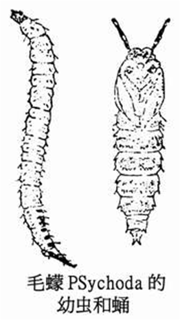 本科幼虫体长约3-10mm。栖水底富有机质处或丝状藻类堆集处的表面,或极污化的水膜上,数量较多。以藻类和腐烂的植物为食,每年一个世代,以成虫越冬,如毛蠓PSychoda。