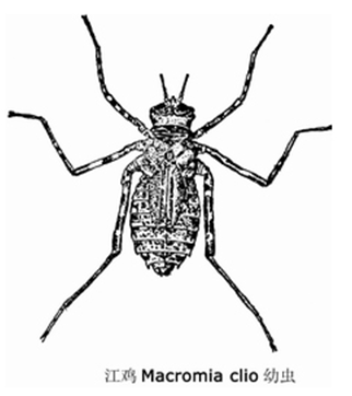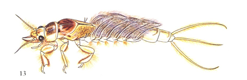 稚虫体长达20-30mm,体长筒形,两端较尖。大颚长尖形,向外弯曲。触角长形,有缘毛。尾毛3条等长。足强壮,适于掘泥生活。常栖息污泥污水中,如蜉蝣Ephemera。