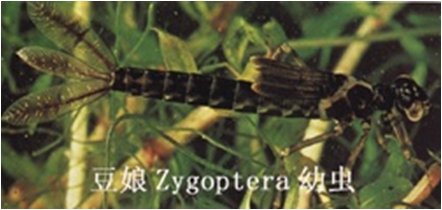 1(2)体细长,腹末具3条细长的尾片(尾鳃,气管鳃)……束翅亚目(豆娘亚目,Zygoptera)
