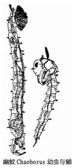 蚊科幼虫总称孑孓。全部发育都在水中进行,几乎任何一点水都可生存。它们因常在水中扭动,故有"跟斗虫"一俗名。蚊科幼虫对环境有很大适应性,能忍受水的盐度和污化度的较大变化。