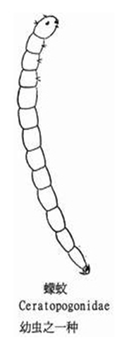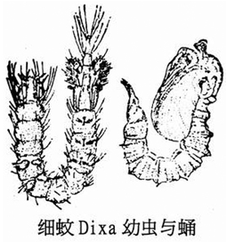 10(11)两对疣状足位于第一节和第二节背面,体静止时作U状弯曲。…………细蚊科Dixidae