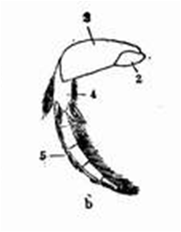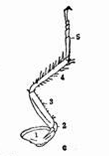 (5)跗节:常由5节组成,末端具有1-2 个爪。