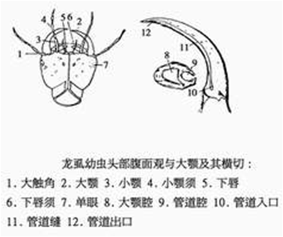 静止时,下唇覆盖在头部腹面口器其他部分之上。为捕食工具。下唇形态及有无刚毛数等在鉴定稚虫上极为重要。