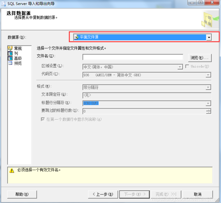 数据源选择平面文件源