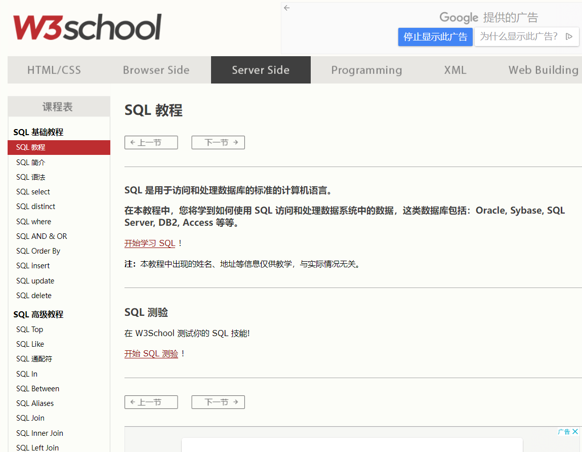 URL:https://www.w3school.com.cn/sql/index.asp