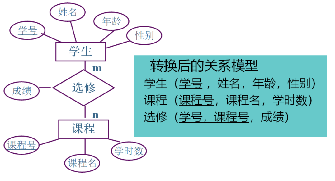 (3)一个 m:n 联系转换为一个关系模式